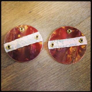 And these are earring pendants I made, but they are not patinaed or tumbled yet. I am still deciding if I want to add rivets to the bottom to dangle some beads (I'm thinking yes) so I have to wait to get my little riveting gadget in the mail! And rivets... Did I mention ArtBLISS makes you buy MORE things than you already have?