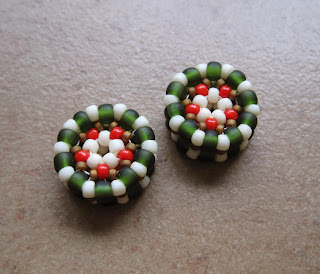I got in the holiday spirit and in addition to making a cute pair of earrings for one of my boyfriend's customers, I made a little pile of beaded beads to offer to you! I'll offer them here first, $10 per pair, with $3.00 shipping. Then in a few days they will go in the etsy store! Also, if you want earrings, let me know!